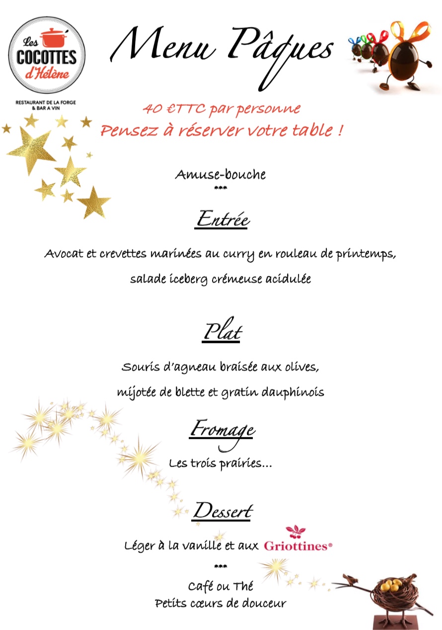 Votre restaurant « Les cocottes d’Hélène » ouvre exceptionnellement le dimanche midi de Pâques.