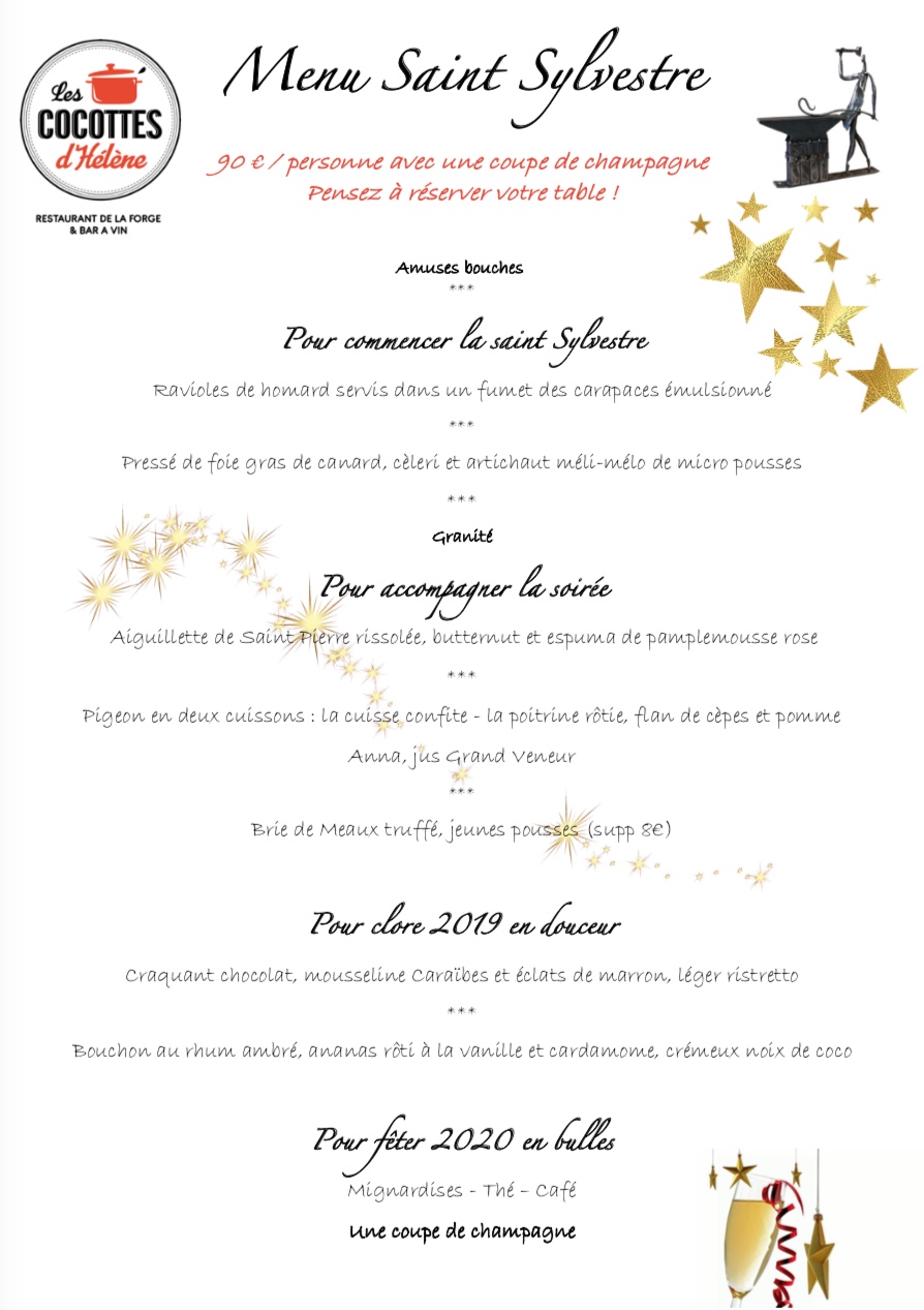 1 Amuse bouche,3 entrées,1 plats,1 fromage,1 dessert,1 coupe de champagne, mignardises et café thé…